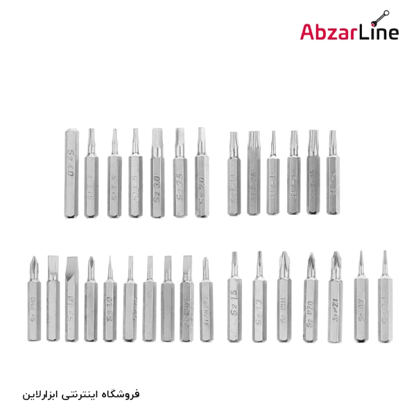 - دارای 30 عدد سر پیچ گوشتی دوسو، چهارسو، آلنی و ستاره ای
