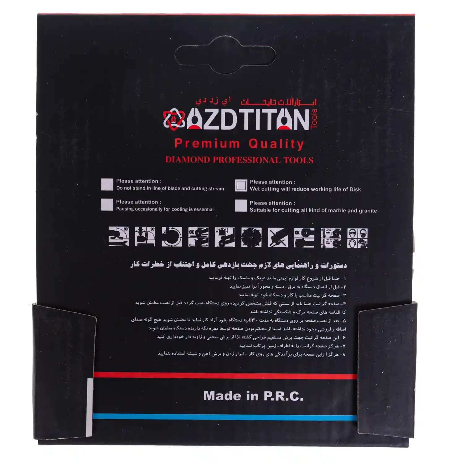 قطر صفحه گرانیت بر تیتان، ۱۱۵ میلیمتر و قطر محور آن ۲۲.۲ میلیمتر است. تیغههای این محصول با الماسههای با کیفیت و برنده تجهیز شده که قابلیت برش بالایی دارند. عرض یا پهنای تیغه ۱۰ میلیمتر و ارتفاع یا ضخامت آن به ۱.۸ میلیمتر میرسد. این میزان سطح، به تیغه کمک میکند تا مقاومت بیشتری از خود نشان دهد و عمری طولانیتر داشته باشد.
