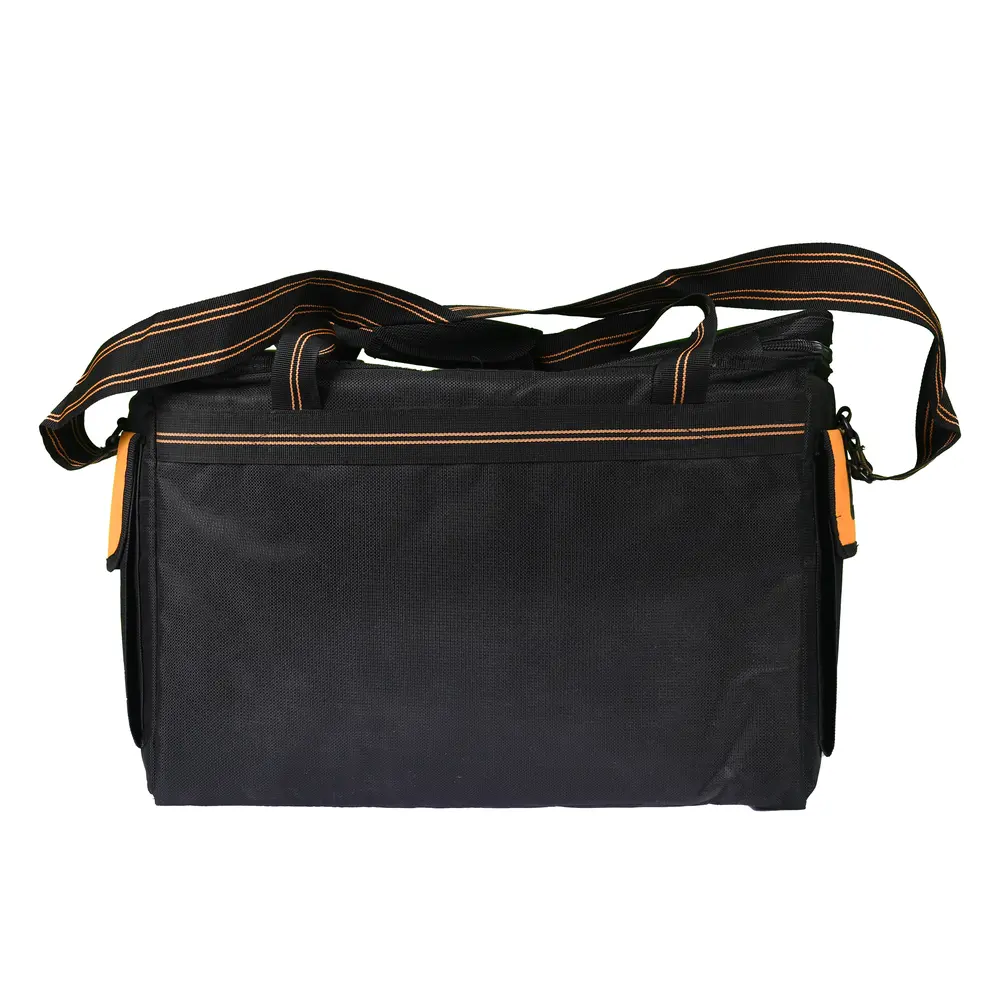 برای حمل آسانتر، این کیف مجهز به دو عدد دستگیره محکم و یک بند دوشی بلند است تا حتی در زمان پر بودن کیف نیز به راحتی قابل جابجایی باشد. ابعاد کلی کیف ۲۰×۵۵×۳۴ سانتیمتر بوده و فضای کافی برای نگهداری ابزارهای مختلف را فراهم میکند.