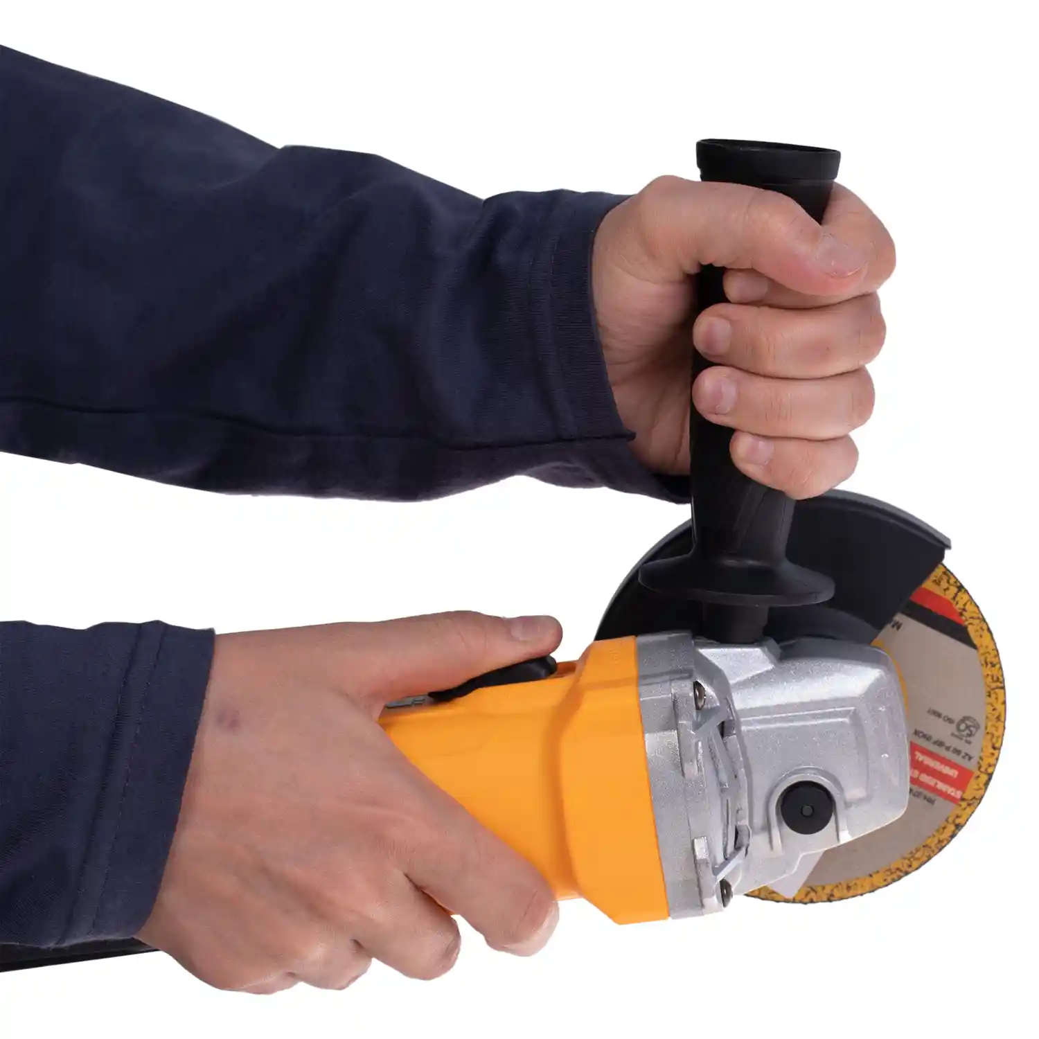 برای راحتی کار و افزایش تسلط بر روی این مینی فرز در شریط کاری گوناگون، یک عدد دستهی پلاستیکی آنتی شوک در نظر گرفته شده است که می توان آن را در هر یک از دو طرف بدنه نصب نمود. برای جلوگیری از سر خوردن در دست و عرق کردن دسته، روکش این دسته به صورت آجدار و همراه با طرح هندسی در نظر گرفته شده است.