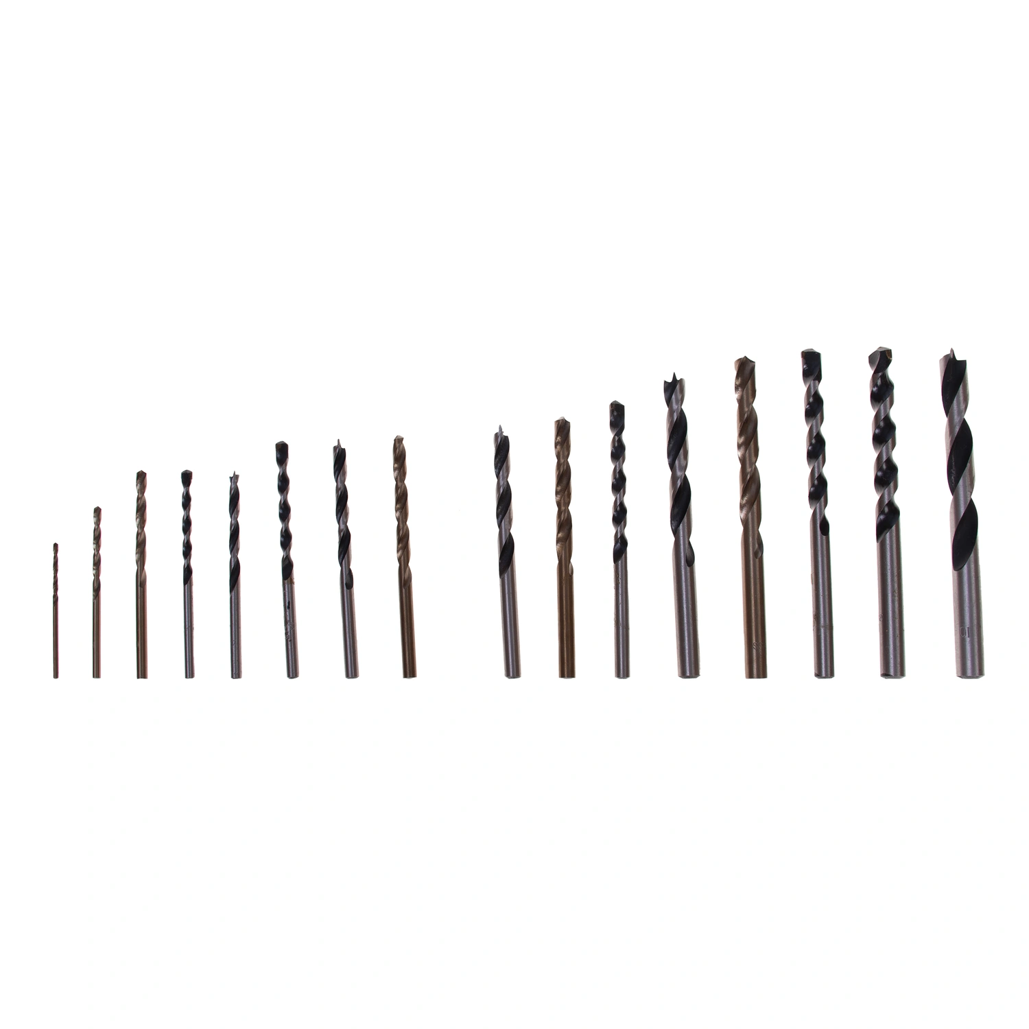 6 مته آهن به سایزهای 2، 3، 4، 5، 6 و 8 میلیمتر/ 5 مته دیوار به سایزهای 4 میلیمتر ("5/32)، 5 میلیمتر ("3/16)، 6 میلیمتر ("15/64)، 8 میلیمتر ("5/16) و 10 میلیمتر ("25/64)/ 5 مته چوب در سایزهای 4، 5، 6، 8 و 10 میلیمتر |