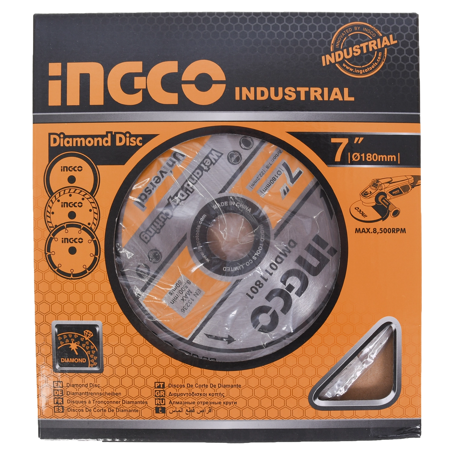 دیسک گرانیت بر ۷ اینچ اینکو مدلDMD011801، یک صفحه برش سنگ گرانیت دارای تیغه الماسه با قدرت برش بالا و پهنای ۱۰ میلیمتر و ضخامت ۲.۳ میلیمتر است که دارای عمر طولانی است و به گونهای طراحی شده است که در سنگ، برش هایی منظم و یکنواخت ایجاد کند.