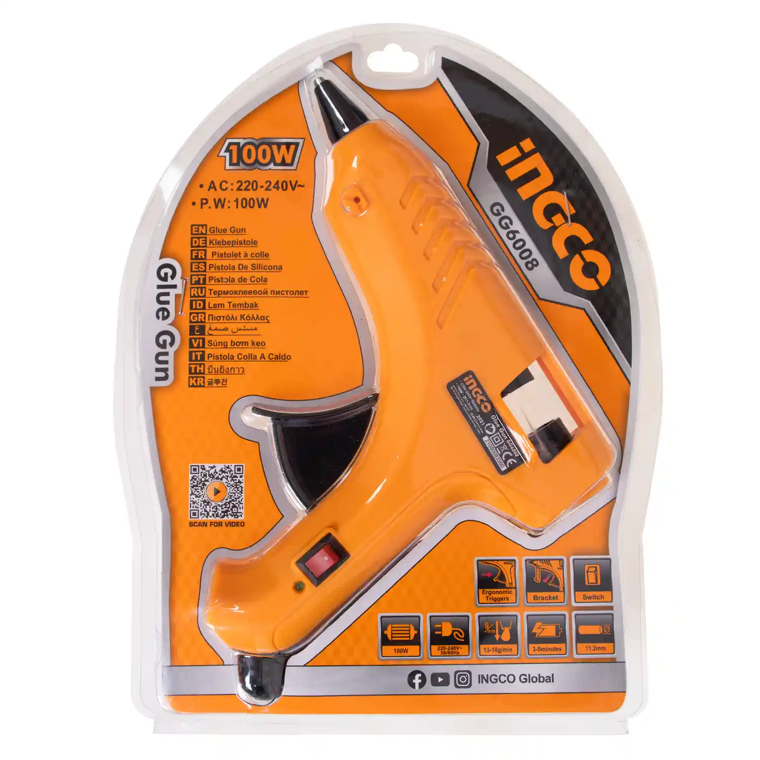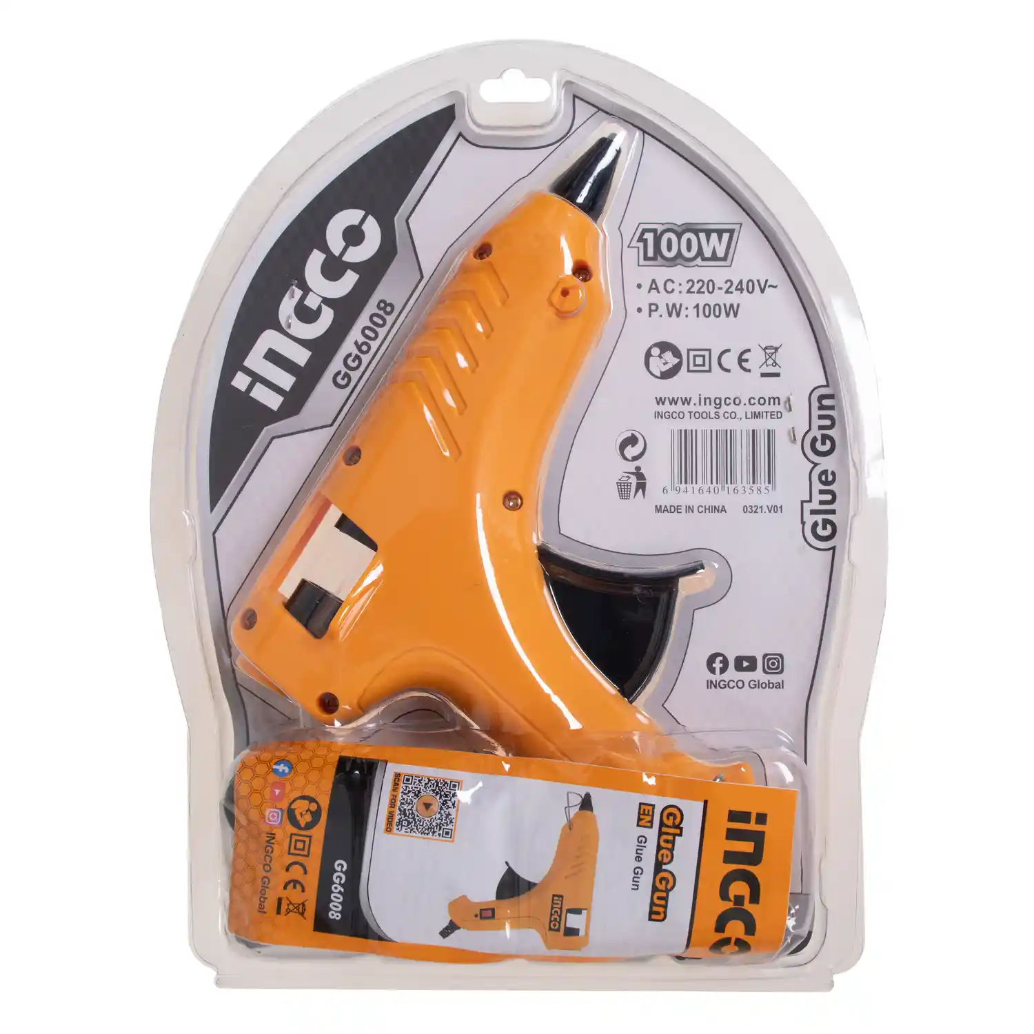 تفنگ چسب حرارتی ۱۰۰ وات اینکو مدل GG6008 یک تفنگ چسب با قدرت ۱۰۰ وات است که با برق شهری ۲۲۰ ولت در مدت زمان ۳ تا ۵ دقیقه گرم میشود و میتوان از آن استفاده نمود.