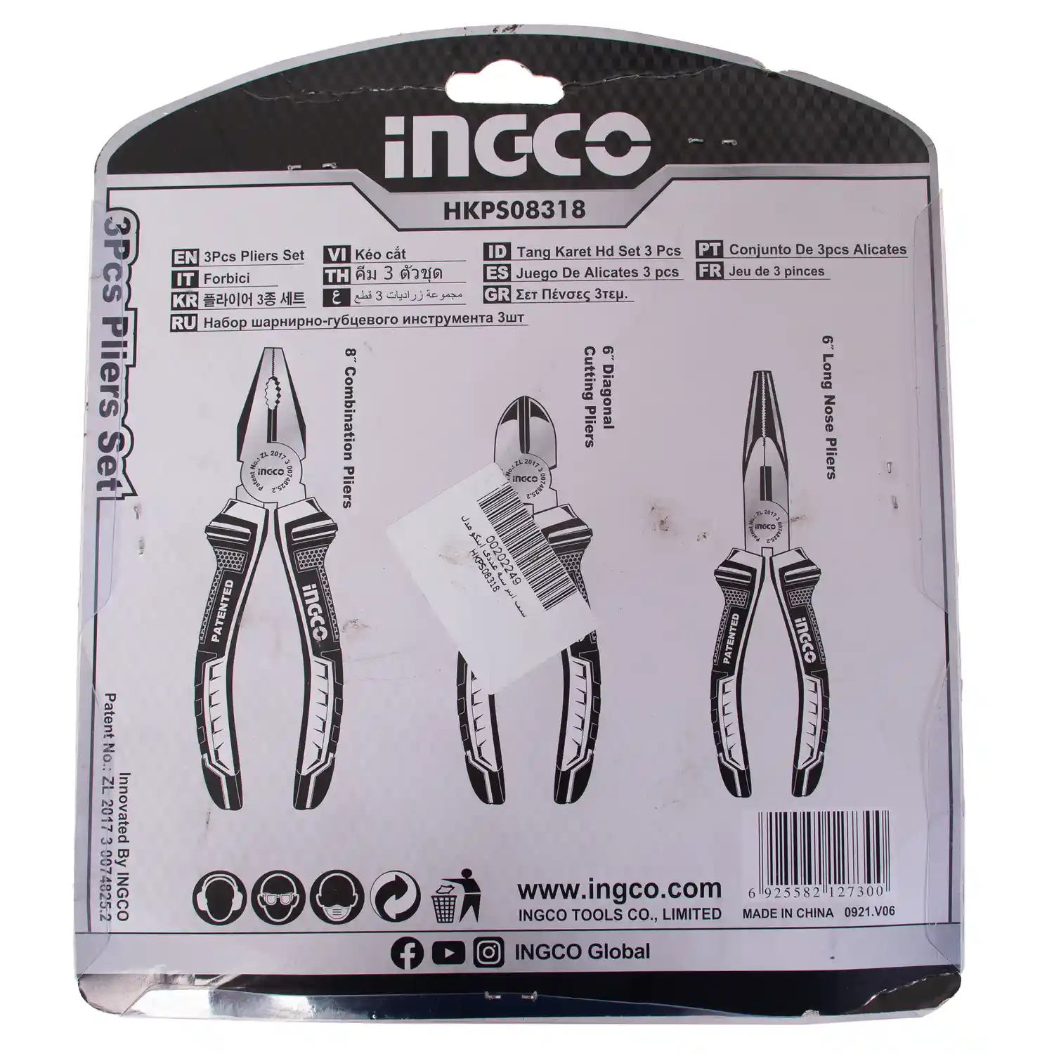 ست ۳ عددی انبر اینکو مدل HKPS08318 ، دارای یک عدد انبردست ۸ اینچ، یک عدد انبر سیم چین ۶ اینچ و یک عدد انبر دم باریک ۶ اینچ است که همگی از جنس آلیاژ فولاد مقاوم و با کیفیتی تولید شده اند و بدنهی آن ها برای دوام و استفاده ی طولانی مدت به صورت ضد زنگ و مقاوم در برابر رطوبت ساخته شده است.