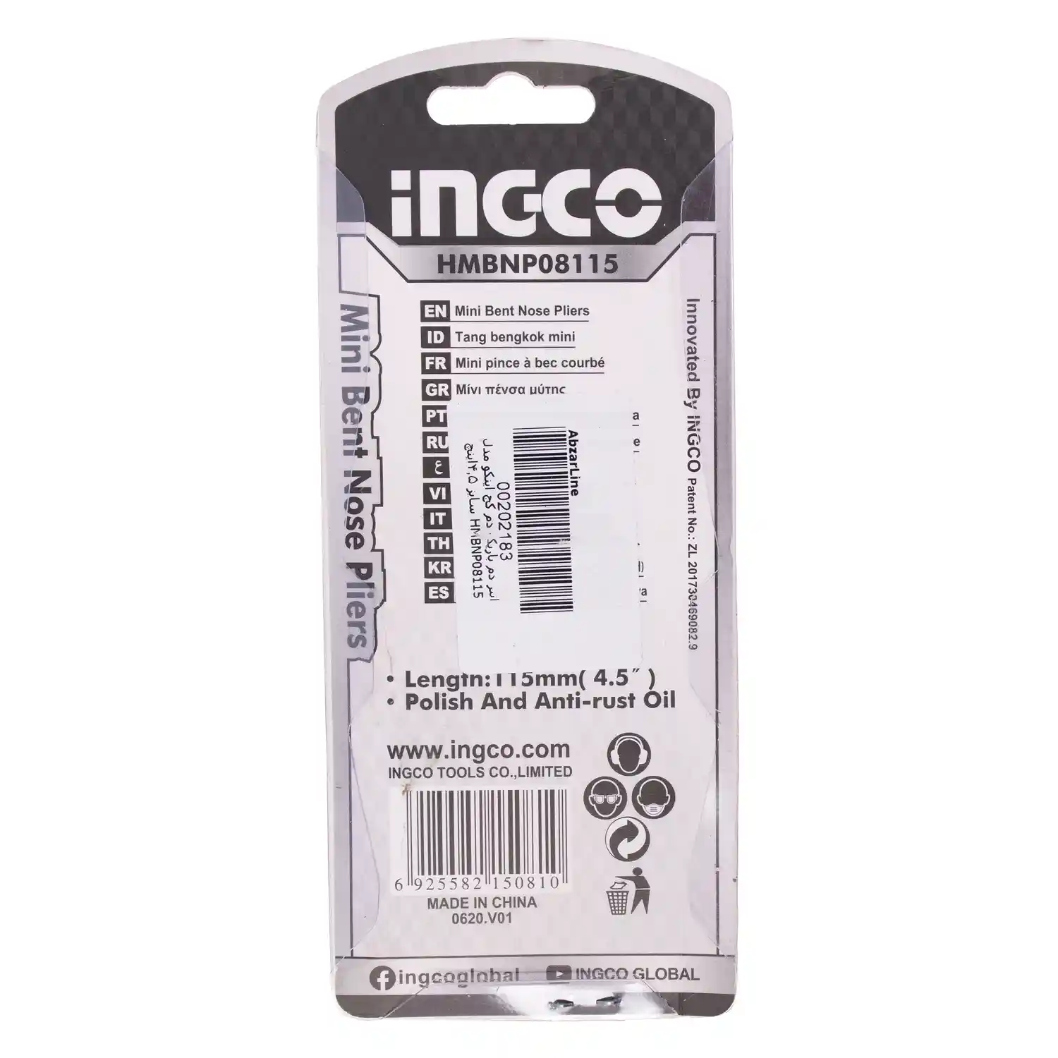 انبر دم باریک سر کج صنعتی اینکو مدل HMBNP08115 سایز ۴.۵ اینچ