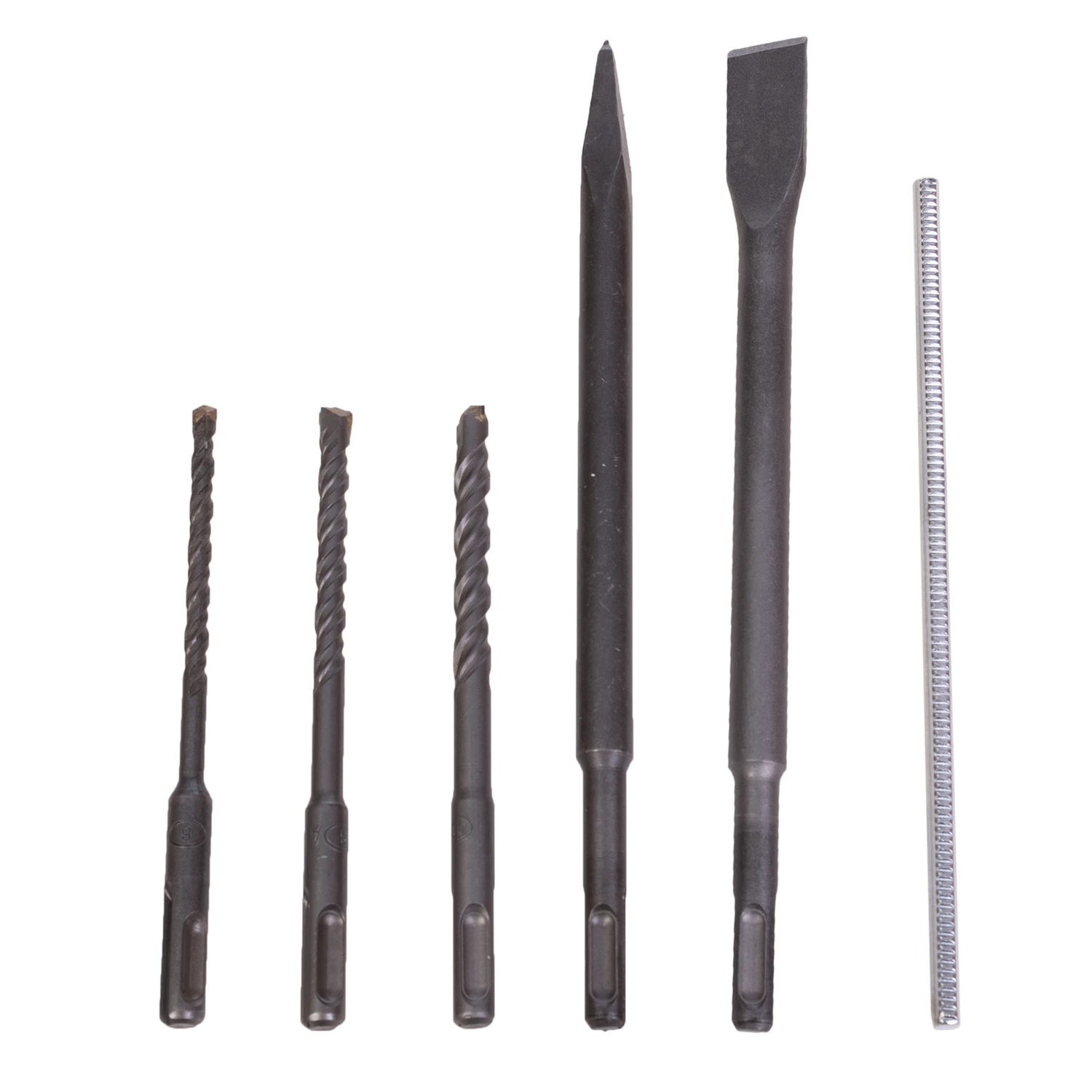 - همراه با خط کش، دسته جانبی 360 درجه، 3 عدد مته در سایزهای 6 و 8 و 10 میلیمتر، دو عدد قلم تیز و پهن، دو عدد زغال، دفترچه راهنما و کارت گارانتی
