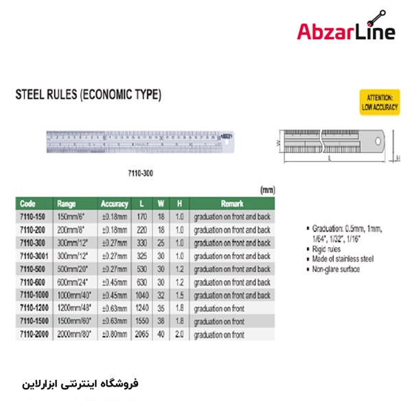 خانه » فروشگاه » ابزار اندازه گیری » خط کش فلزی اینسایز مدل ۷۱۱۰