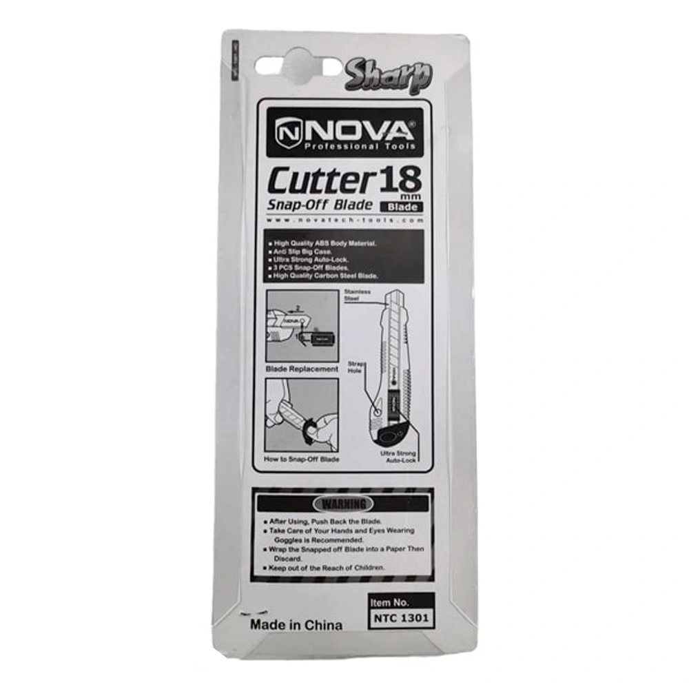 کاتر ۱۸ میلیمتری نووا مدل ۱۳۰۱ ساخت کشور چین است و با کیفیت قابل اعتماد عرضه میشود. این ابزار مناسب برای کاربرانی است که به دنبال برش دقیق، ایمن و حرفهای هستند و میخواهند یک ابزار بادوام و کاربردی در اختیار داشته باشند.