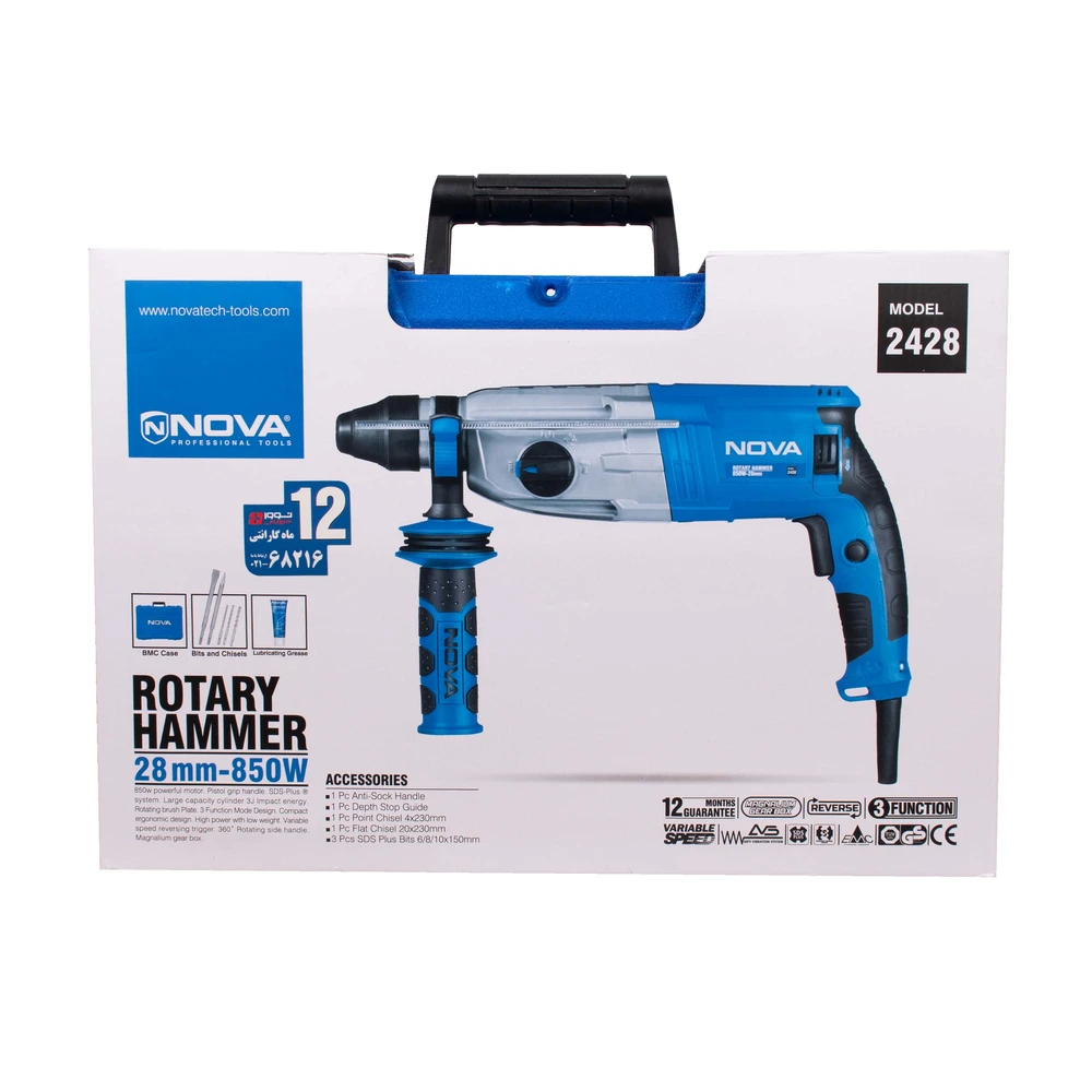 خانه » فروشگاه » ابزار برقی و شارژی » دریل » دریل بتن کن » دریل بتن کن ۸۵۰ وات نووا مدل ۲۴۲۸