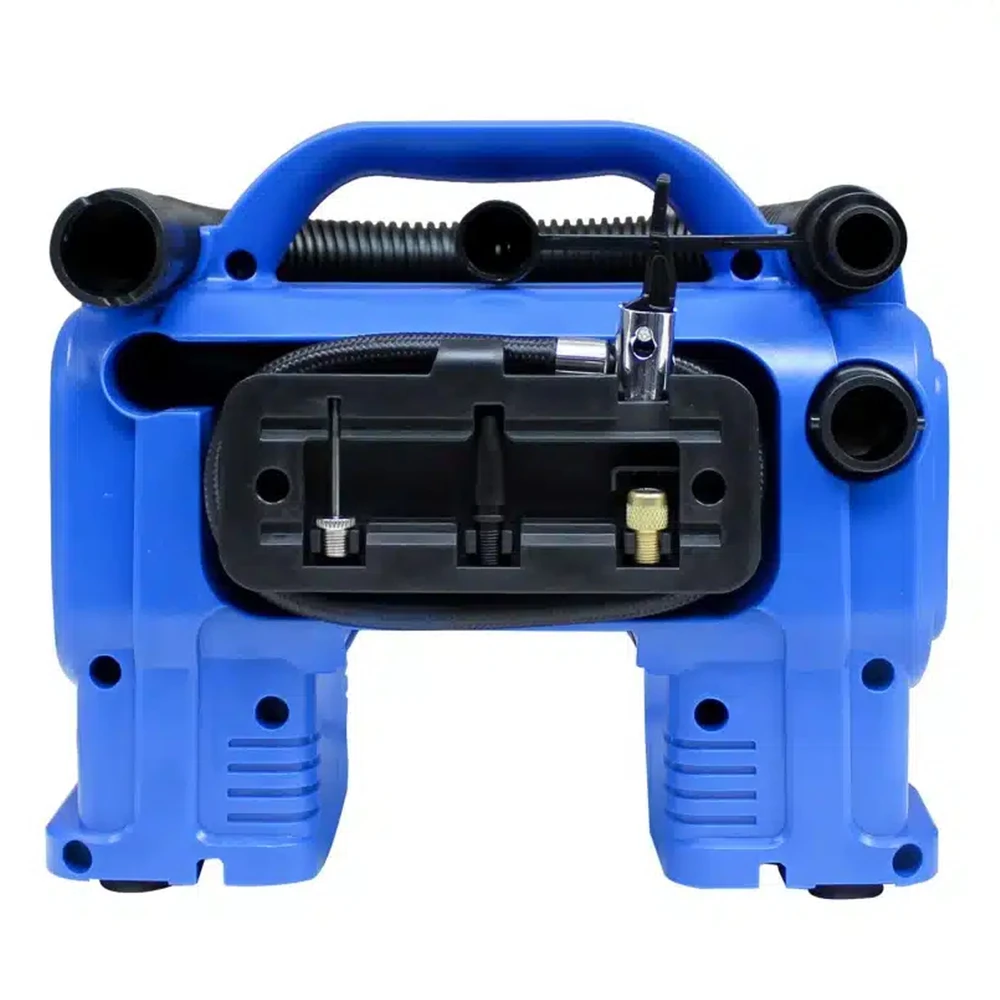 این کمپرسور برای باد کردن انواع لاستیک خودرو، دوچرخه و موتور سیکلت، آمادهسازی قایقها و تجهیزات تفریحی بادی و حتی باد کردن تشکهای بادی خانگی مناسب است. اقلام همراه شامل سه نازل و یک شلنگ با حجم جریان بالا است.