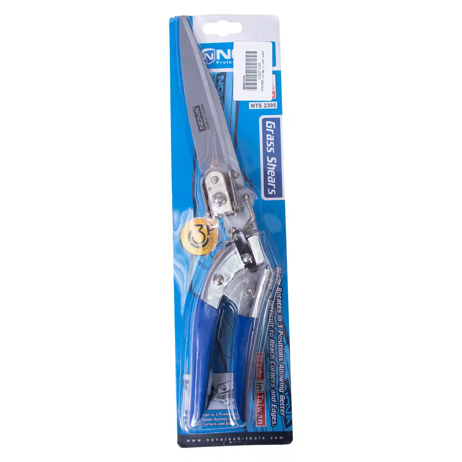 نکتهی جالب و کاربردی این قیچی در طراحی آن و حالت قرارگیری و چرخش وضعیت تیغه های این قیچی برای تنوع دادن به روش برش کاری و چیدن انواع گیاهان در زوایا و حالت های مختلف است. تیغه های این قیچی چمن زن نووا با کمک چرخاندن یک ریل دندانه دار، در سه جهت افقی، عمودی و زاویه دار قابل چرخش هستند که همین مزیت، کارایی این قیچی ۱۳.۵ اینچی نووا را چندین برابر کرده است. حالت افقی تیغه برای کوتاه کردن چمن، حالت عمودی برای کوتاه کردن لبه های چمن و حالت زاویه دار تیغه ها برای چیدن گیاه در مناطق سخت با دسترسی دشوار کاربرد دارد.