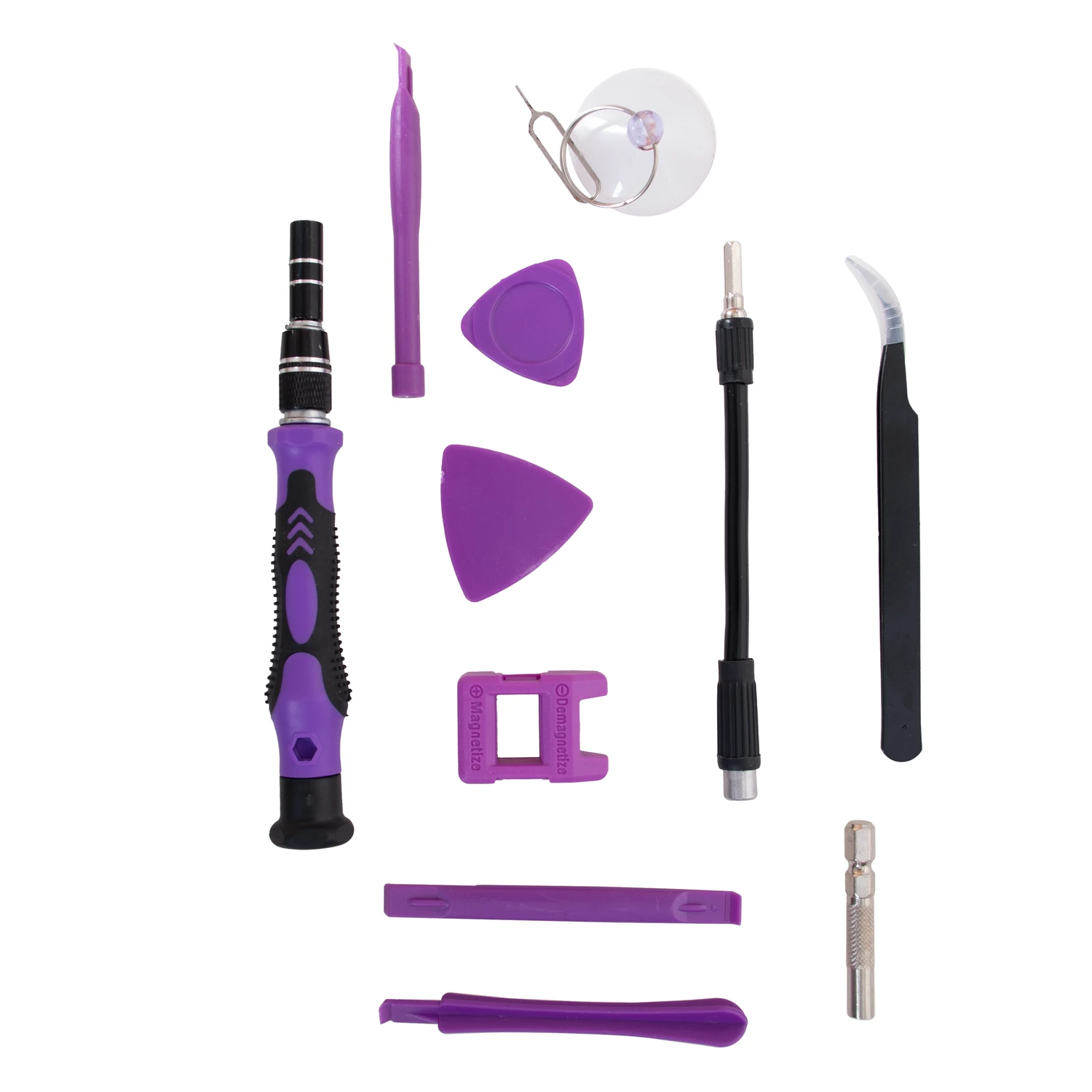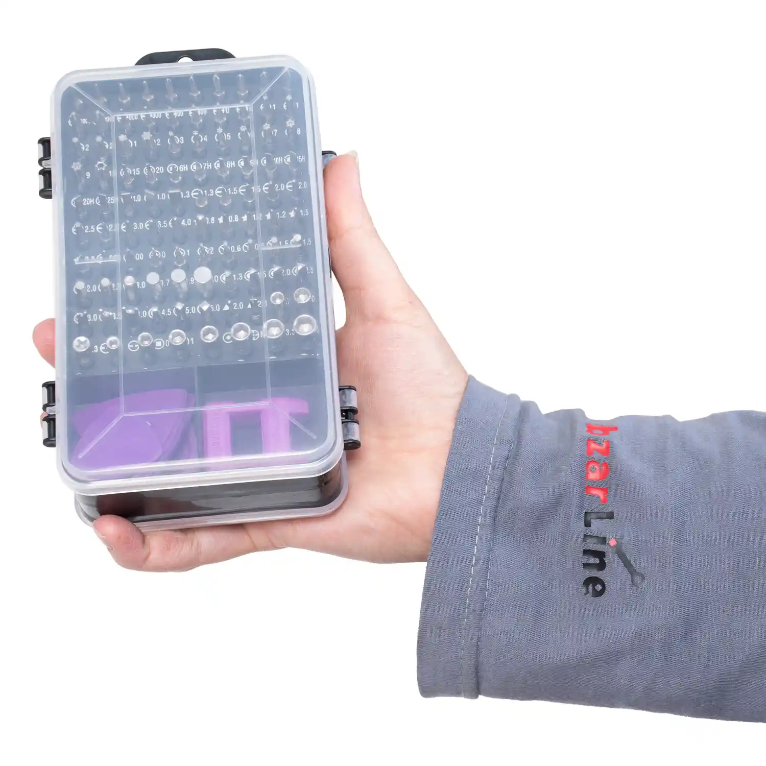این مجموعه به طور کلی ۹۸ عدد سری پیچ گوشتی و سری بکس ، یک اضافه شونده ی منعطف ۱۳ سانتیمتری و یک اضافه شونده ی فلزی ۴.۵ سانتیمتری ، یک عدد موچین و سه ابزار پلاستیکی جهت تعمیرکاری ، یک عدد دسته پیچ گوشتی ۱۴ سانتیمتری ، یک عدد نگهدارنده یا گیره مکنده پلاستیکی ، یک عدد سوزن خارج کننده ی سیم کارت ، یک عدد آهنربا و شش صفحه ی قاب باز کن پلاستیکی دارد.
