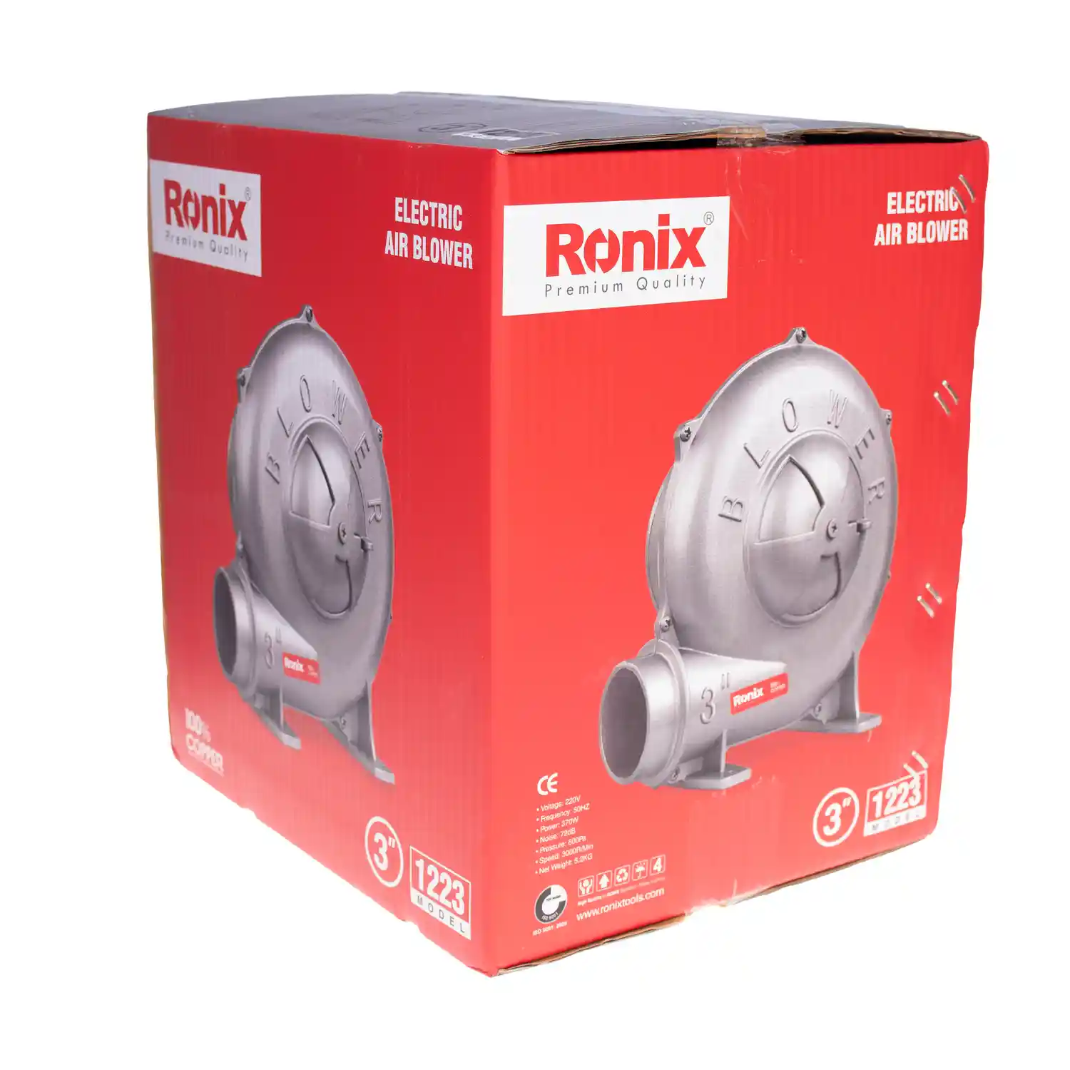دستگاه دمنده برقی رونیکس، با سرعت گردش آزاد ۳۰۰۰ دور در دقیقه و قابلیت تولید باد با فشار ۶۰۰ پاسکال، یکی از پرکاربردترین ابزارالات برقی تولید شده توسط شرکت رونیکس در چین است که در هنگام کار، صدایی با شدت ۷۲ دسی بل تولید مینماید.