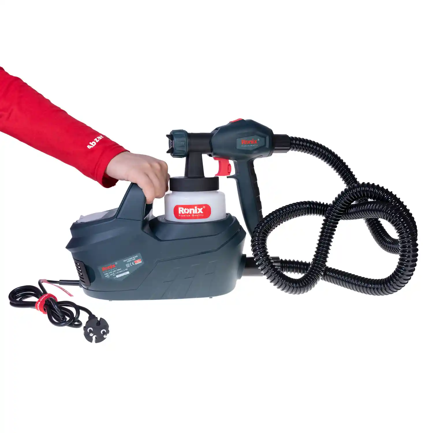پیستوله برقی ۶۵۰ وات خرطومی رونیکس مدل ۱۳۶۵، از منبع برق تغذیه میکند و مکانیزم آن مبتنی بر سیستم HVLP است. در سیستم HVLP، هوا با فشار کم اما پر حجم وارد پیستوله و مخزن رنگ میشود و با فشار به سطح رنگ، آن را وارد نازل میکند. به این صورت، رنگ با فشار از نازل خارج و به سطح مورد نظر پاشیده میشود.