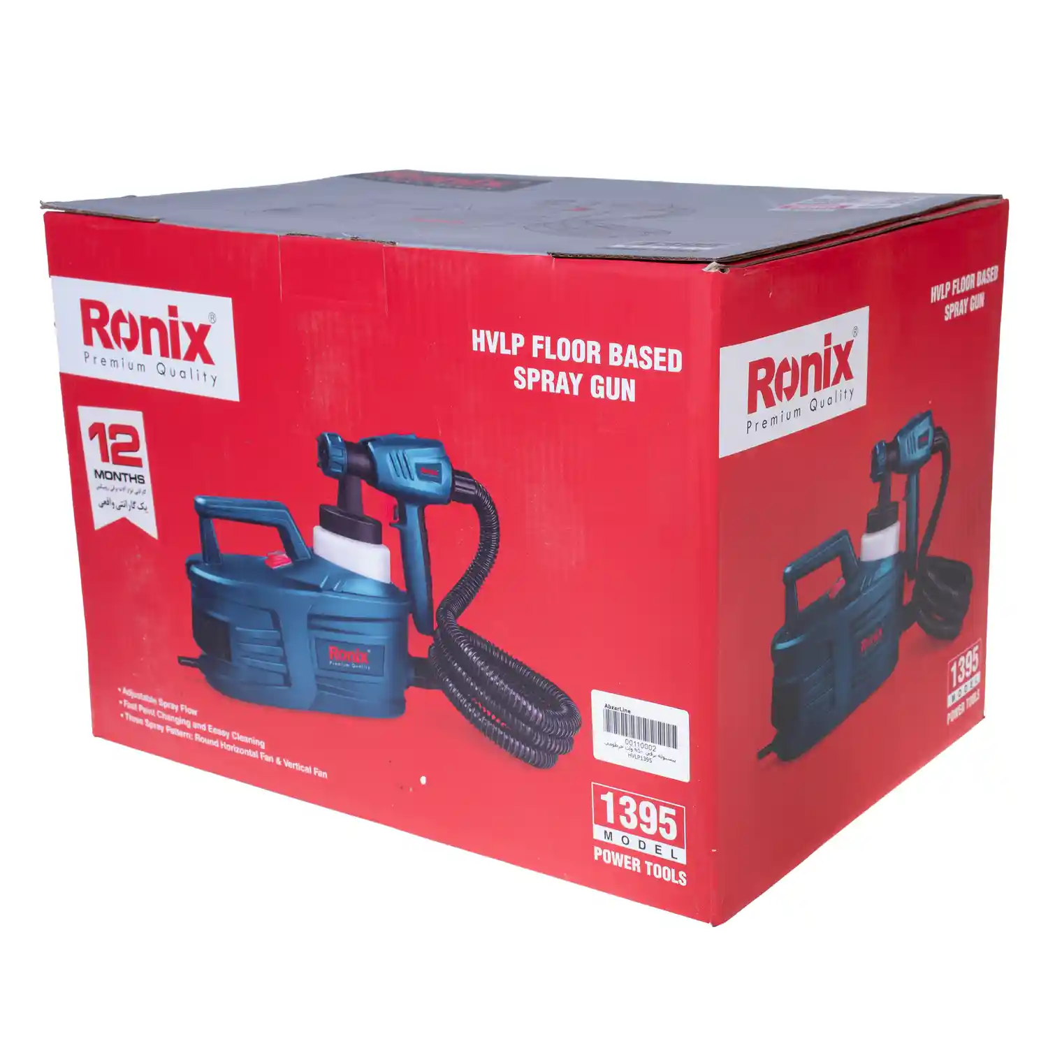 پیستوله برقی رونیکس ۱۳۹۵، مجهز به موتور قدرتمند ۹۵۰ واتی است که منطبق بر استانداردهای اروپا CE تولید شده و از قدرت قابل توجهی برخوردار است. این پیستوله خرطومی دارای جریان خروجی ۸۰۰ میلیلیتر بر دقیقه است و امکان نصب دو سایز نازل بر روی آن وجود دارد؛ نازل ۱.۸ میلیمتری و ۲.۳ میلیمتری. کاربر بنا به نیاز خود میتواند از هر کدام از این نازلها استفاده کند.