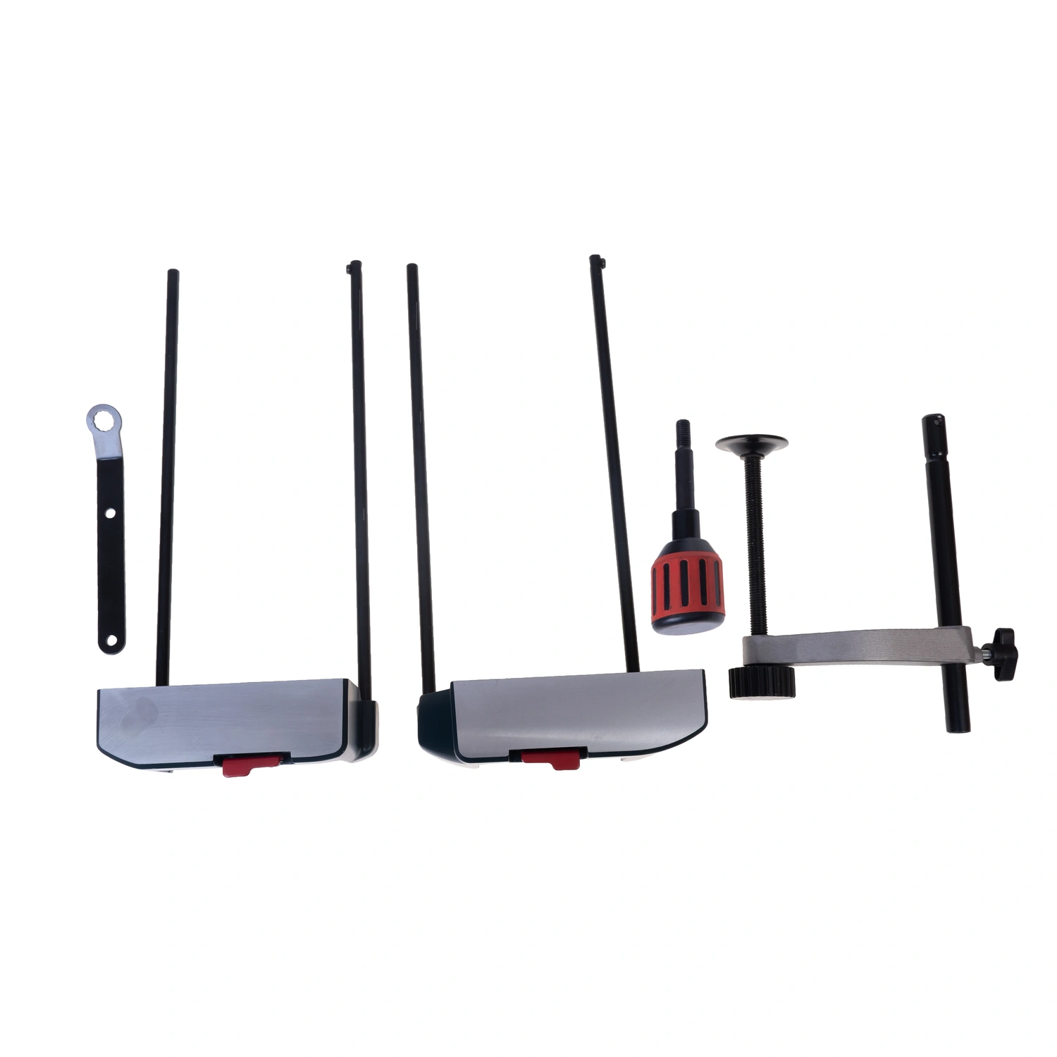 به همراه این دستگاه، یک کیسهی جمعآوری براده، گیره، دسته، آچار، دو عدد پیچ و دو بازو قرار دارد.