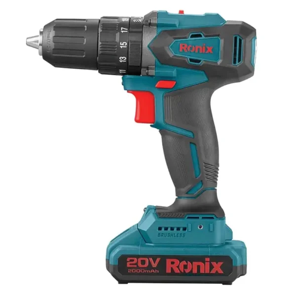 دریل شارژی رونیکس مدل 8900k دارای موتور براشلس ضدآب و بدنهای با روکش لاستیکی ضدتعریق است. سه نظام اتوماتیک ۱۳ میلیمتری آن از جنس پلاستیک فشرده بوده و امکان تعویض سریع مته و سری پیچ را ساده میکند. طراحی ارگونومیک دسته و کلید گازی ضدغبار کنترل کامل ابزار را در حین کار تضمین میکند و چراغ LED به همراه نشانگر باتری، امکان کار در محیطهای کم نور را فراهم میآورد.