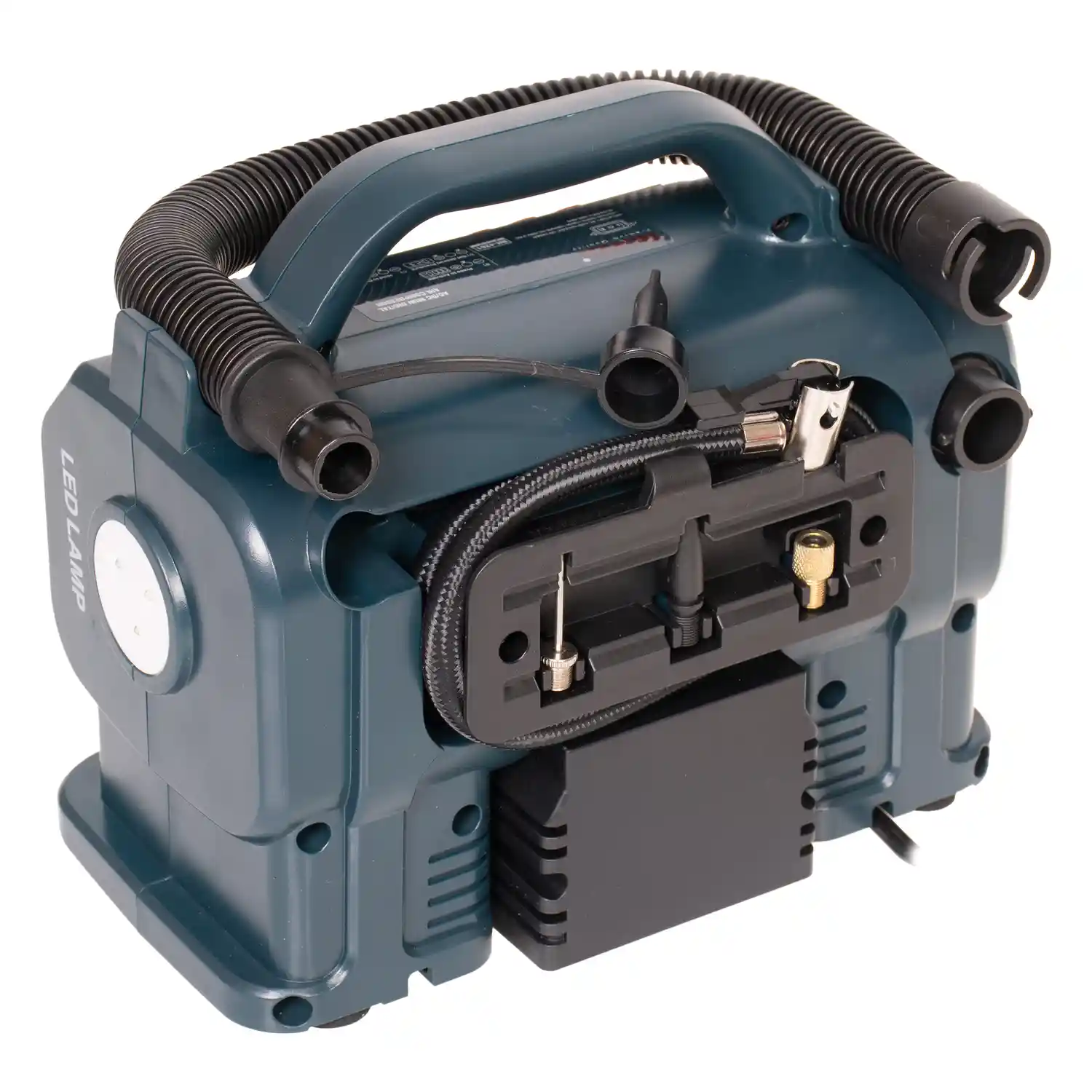 - کمپرسور هوا دارای عملکرد سهگانه دمنده، کمپرسور و چراغ قوه