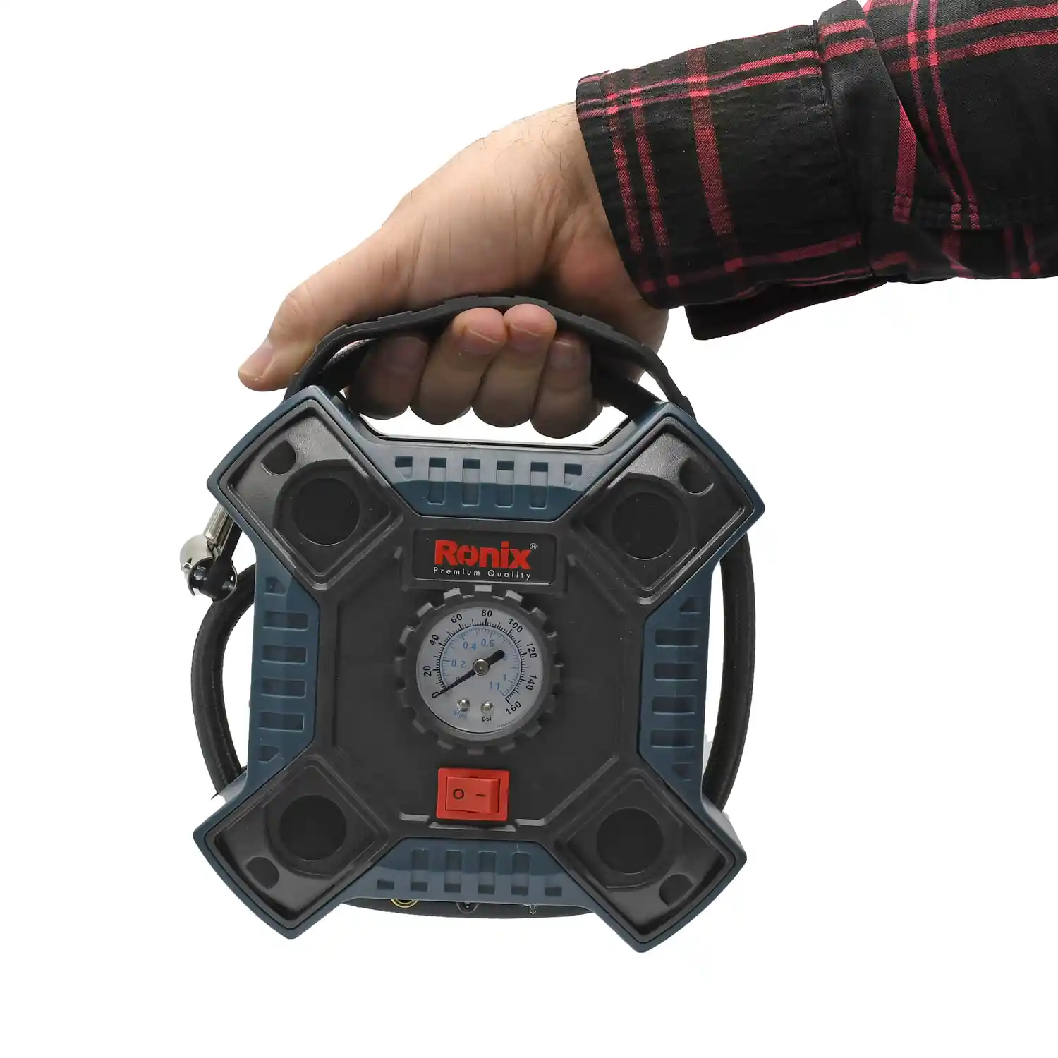 مینی کمپرسور رونیکس،  دارای موتور و سیلندر پر قدرت و مقاومی است که میتواند هوا را تا میزان فشار حداکثر  ۱۱ بار معادل با 160PSI فشرده و خارج کند.