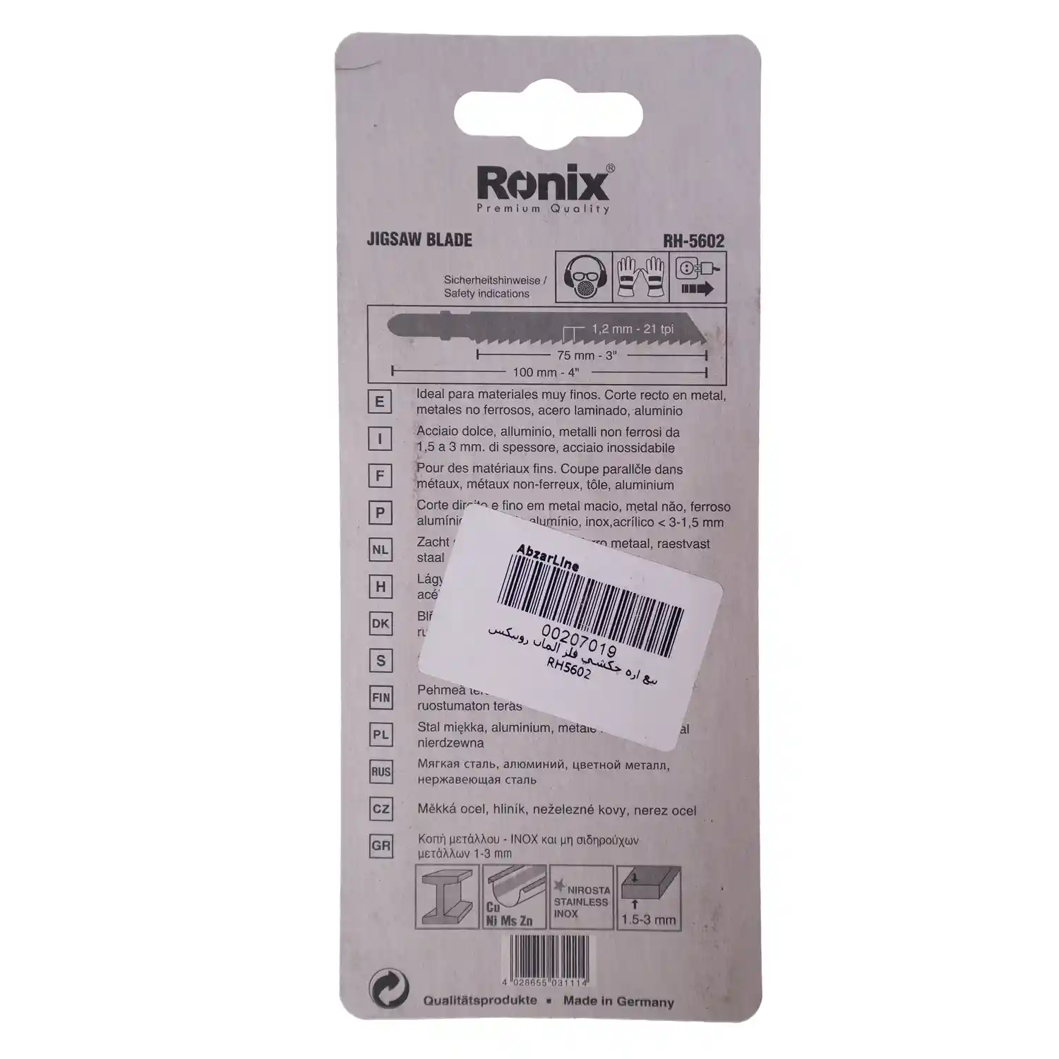 شرکت رونیکس این ۵ عدد تیغ اره عمود بر آهن را در بسته بندی به ابعاد ۱۸.۵×۸×۰.۵ سانتیمتر ارائه کرده است.
