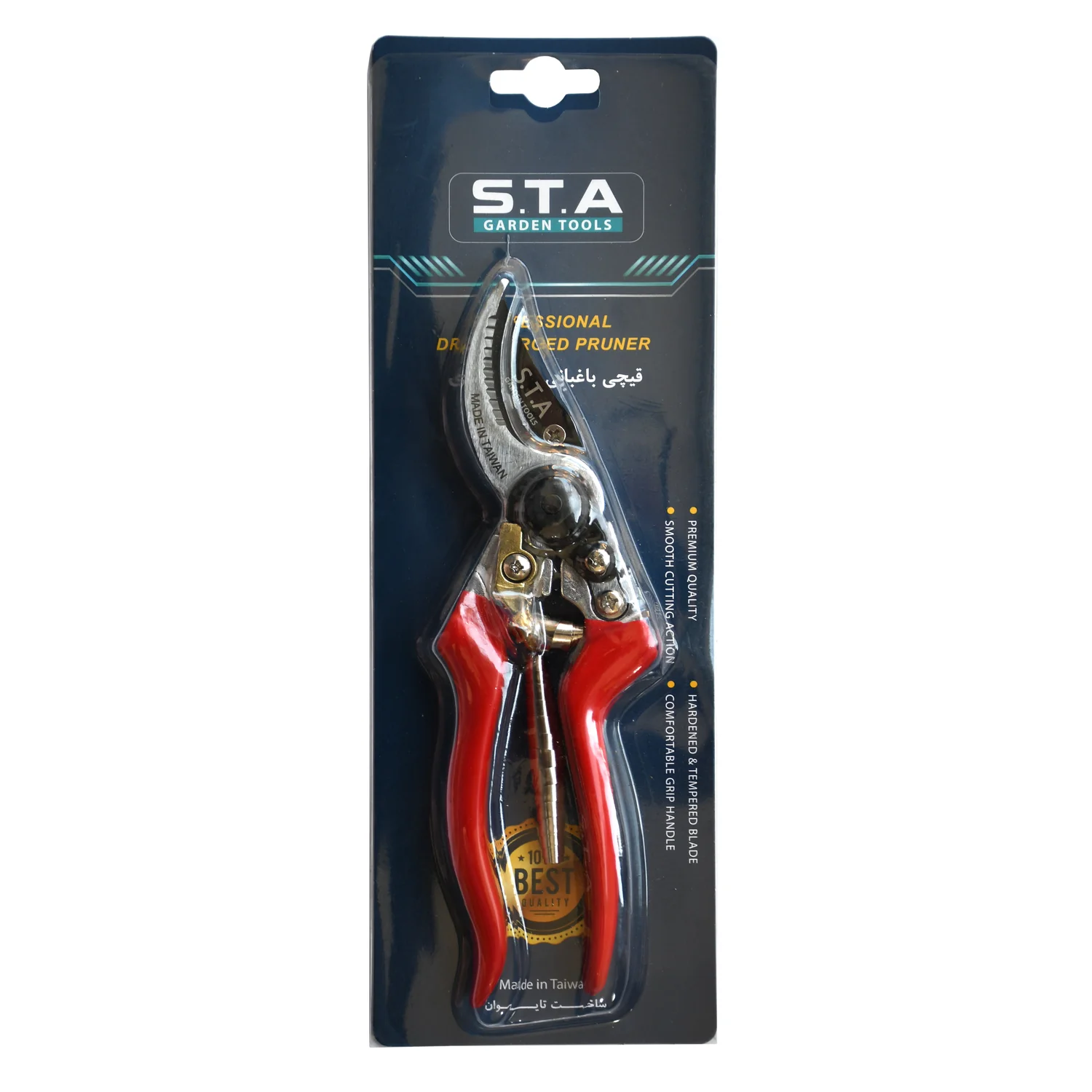 مکانیزم قیچی باغبانی اس تی ای مدل ۸۴۰۱، به خوبی برای ایجاد یک برش صاف و یکنواخت طراحی و تولید شده است. وزن کم این قیچی باغبانی یاریگر شما در فعالیت های برش و هرس در کارهای طولانی مدت است. هر دو تیغه ی این ابزار، سخت کاری شده و حرارت دیده هستند. تیغهی بالایی این قیچی باغبانی خوب، از جنس فولاد با کربن بالا Sk-5 بدون چسب PTFE است و تیغه ی پایینی آن از جنس فولاد با پوشش کروم سخت و به صورت دندانه دار ساخته شده تا با اعمال نیروی اندک، فشار برش خوبی را بر سطح ایجاد کند. تیغهی بالایی این قیچی تایوانی، را کشور ژاپن ساخته است.