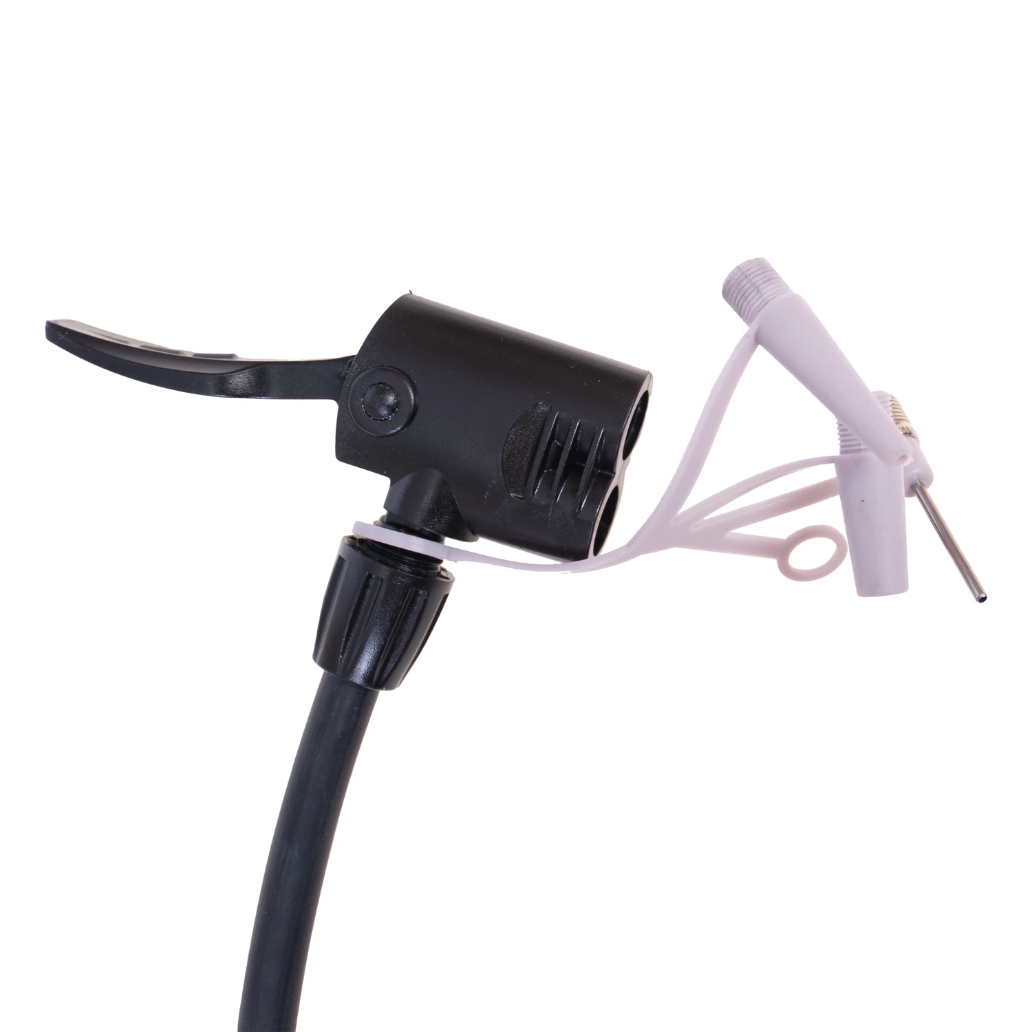 اتصالات بدنهی این تلمبه پدالی دو سیلندر کاملا مقاوم و بادوام اند و یک شلنگ بلند و انعطاف پذیر برای این دستگاه تعبیه شده است که همراه با سه عدد نازل خود برای باد زدن لاستیک چرخ، تیوپ، توپ، استخر بادی و سایر موارد مشابه به کار می رود.