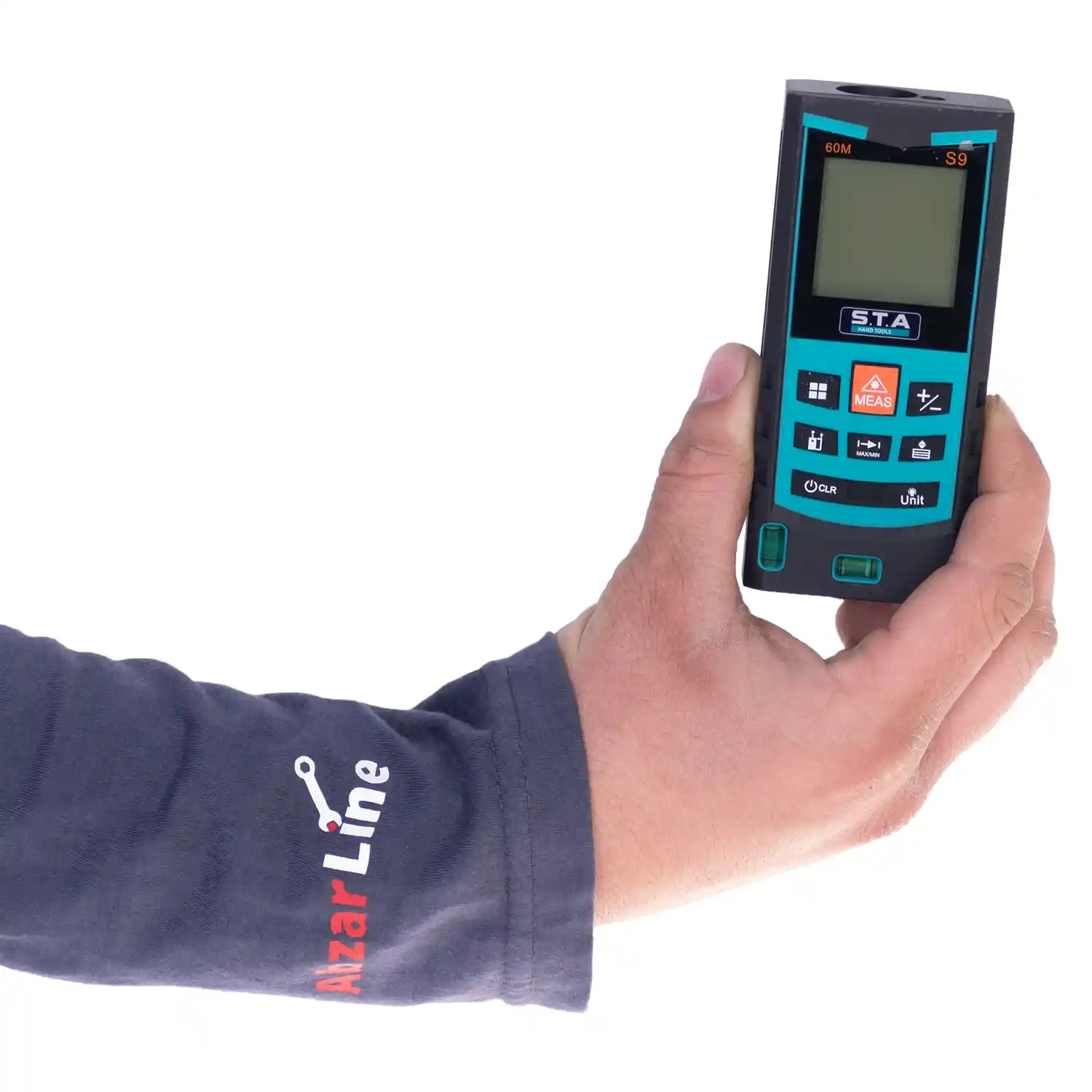 متر لیزری STA مدل S9 از متر های باکیفیتی است که با محدوده ی برد ۶۰ متر، دقت اندازه گیری ۱.۵± میلی متر و عمر باتری تا ۵۰۰۰ بار اندازه گیری، امکان انجام عملکردهای اندازه گیری از جمله محاسبه مسافت، محیط، حجم، اندازه گیری غیرمستقیم (فیثاغورثی)، جمع و تفریق، طول، سطح و اندازه گیری به صورت مداوم را برای کاربران عرضه کرده است.