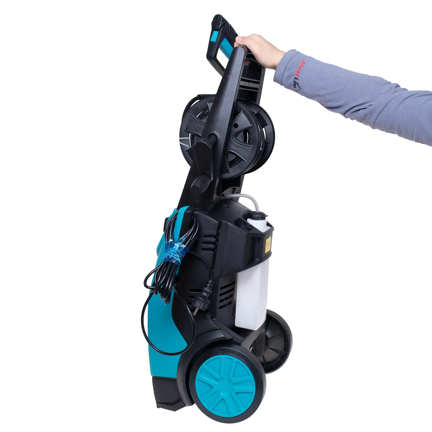 - همراه با بست لوله ، بست شلنگ ، رابط ورودی آب ، سوزن تمیز کنندهی نازل و مخزن مواد شوینده