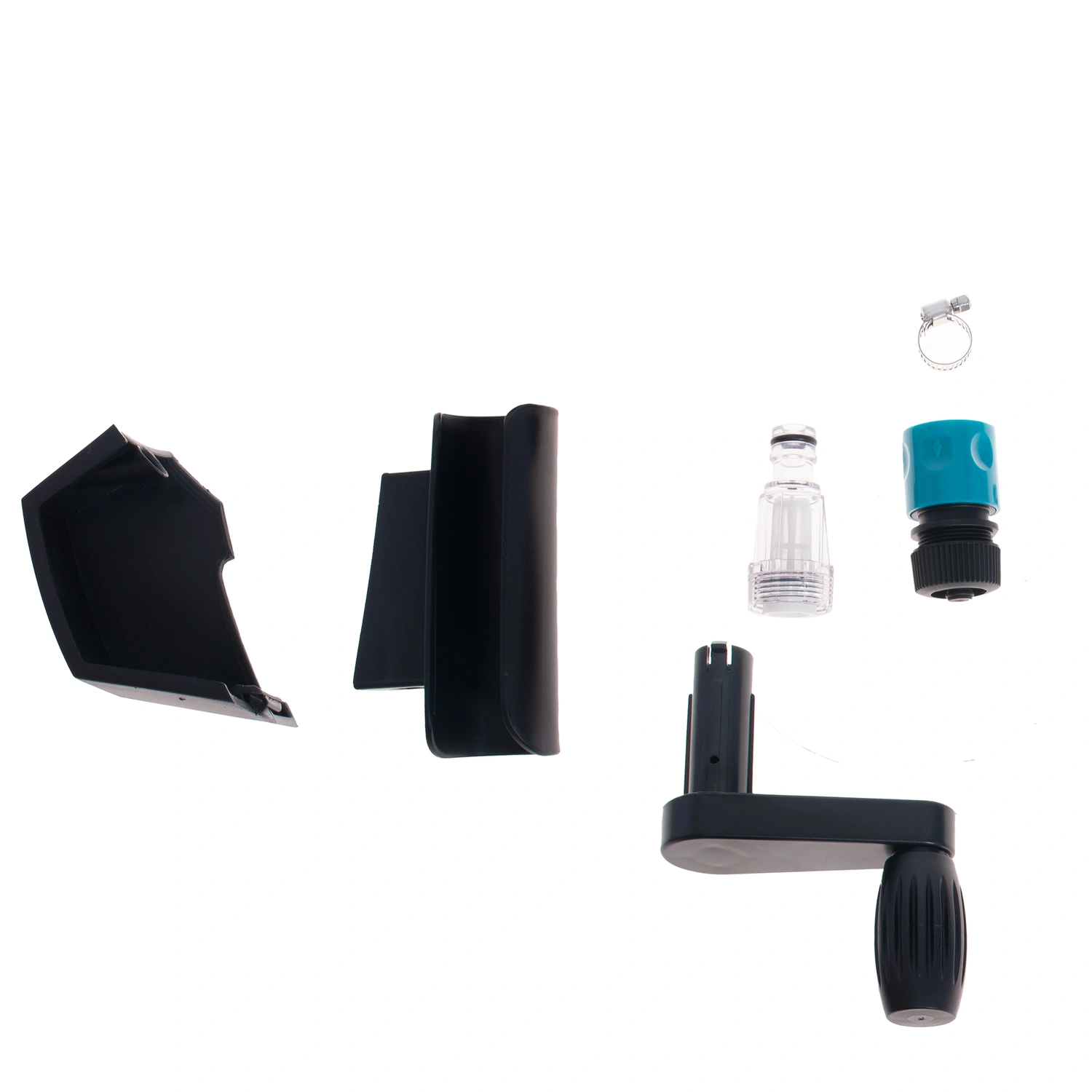 یک عدد لنس نازل قابل تنظیم و یک عدد لنس نازل توربو / برس چرخشی جهت تمیز کاری / تفنگ آب پاش سریع و روان / دو عدد شلنگ آب به قطرهای 3 و 6 میلیمتر / بست لوله / بست شلنگ / رابط ورودی آب / سوزن تمیز کنندهی نازل و مخزن مواد شوینده |