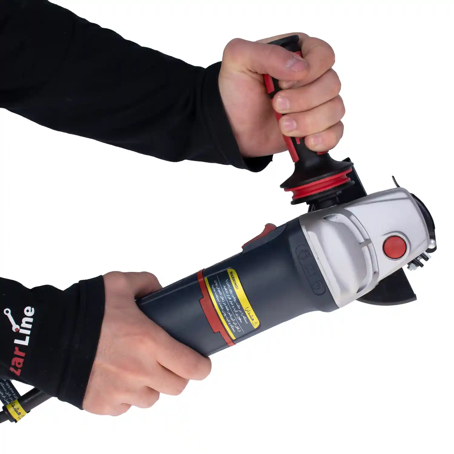 این دستگاه خوشدست و ارگونومیک که مجهز به محافظ ایمنی صفحه سنگ و دارای توانایی برش زاویهدار است، از یک دستهی جانبی پلاستیک فشردهی نرم بهره میبرد که لرزش های حین کار را به خوبی مستهلک میکند.