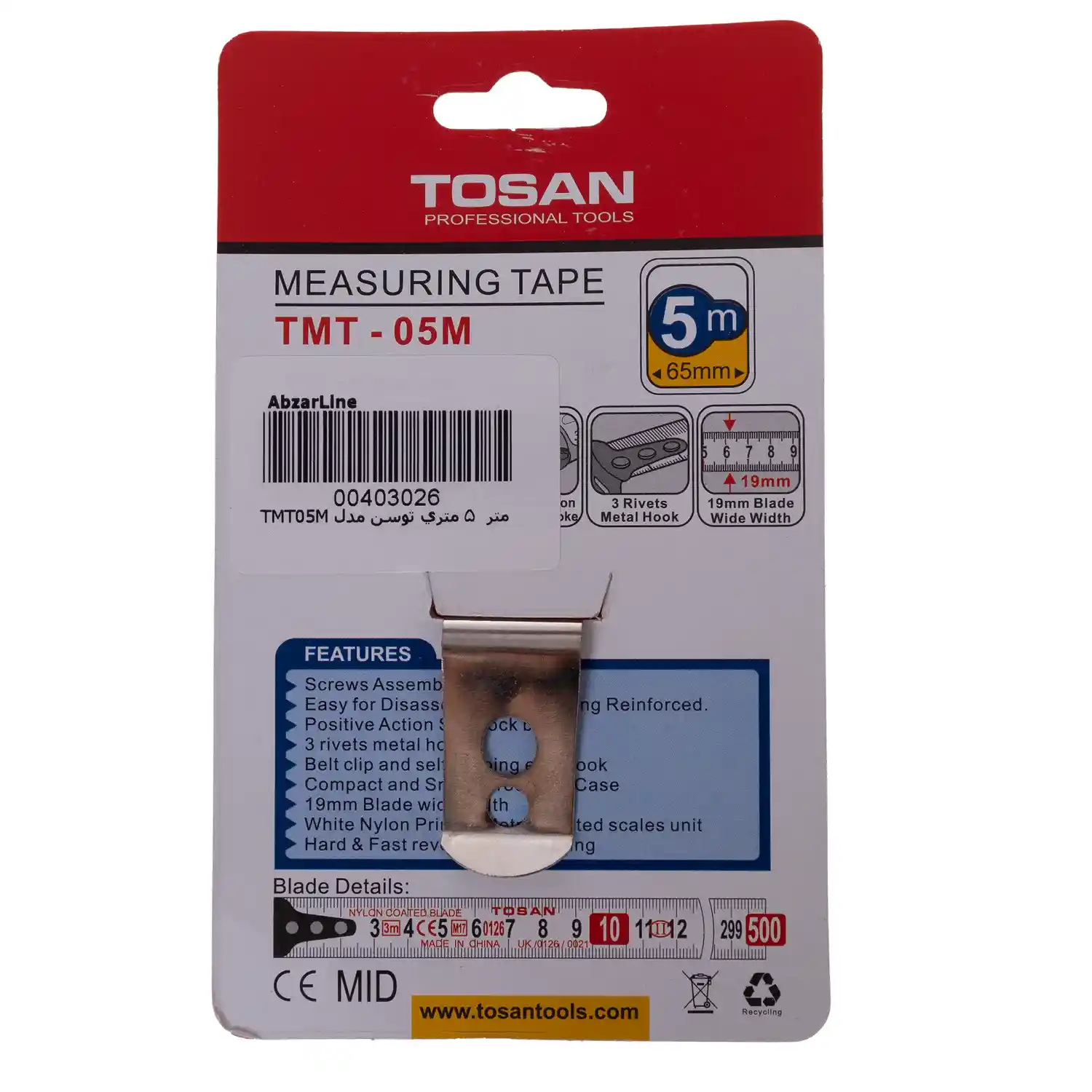 خانه » فروشگاه » ابزار اندازه گیری » متر » متر دستی » متر توسن مدل TMT-05M طول ۵ متر